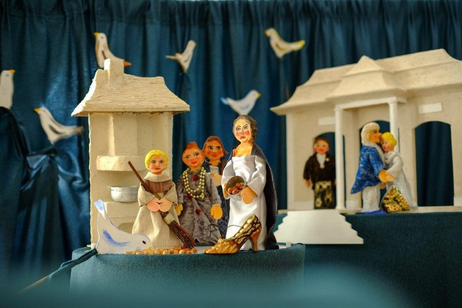 Erbsen aus der Asche lesen, das ist nicht zu schaffen - oder doch? Ganz überraschend wird Aschenputtel ermutigt: Die kleinen Täubchen, die sie herbeiruft, helfen ihr bei der Arbeit, der Haselnussbaum auf dem Grab der Mutter zaubert ihr ein wunderschönes Kleid herbei, und nun kann Aschenputtel unerkannt ins Schloss gehen. Als der Prinz sie sieht, will er nur noch mit ihr tanzen. Warum aber läuft Aschenputtel fort? Zum Glück verliert sie einen Schuh, und damit macht sich der Prinz auf die Suche. Ob er die richtige Braut findet?
